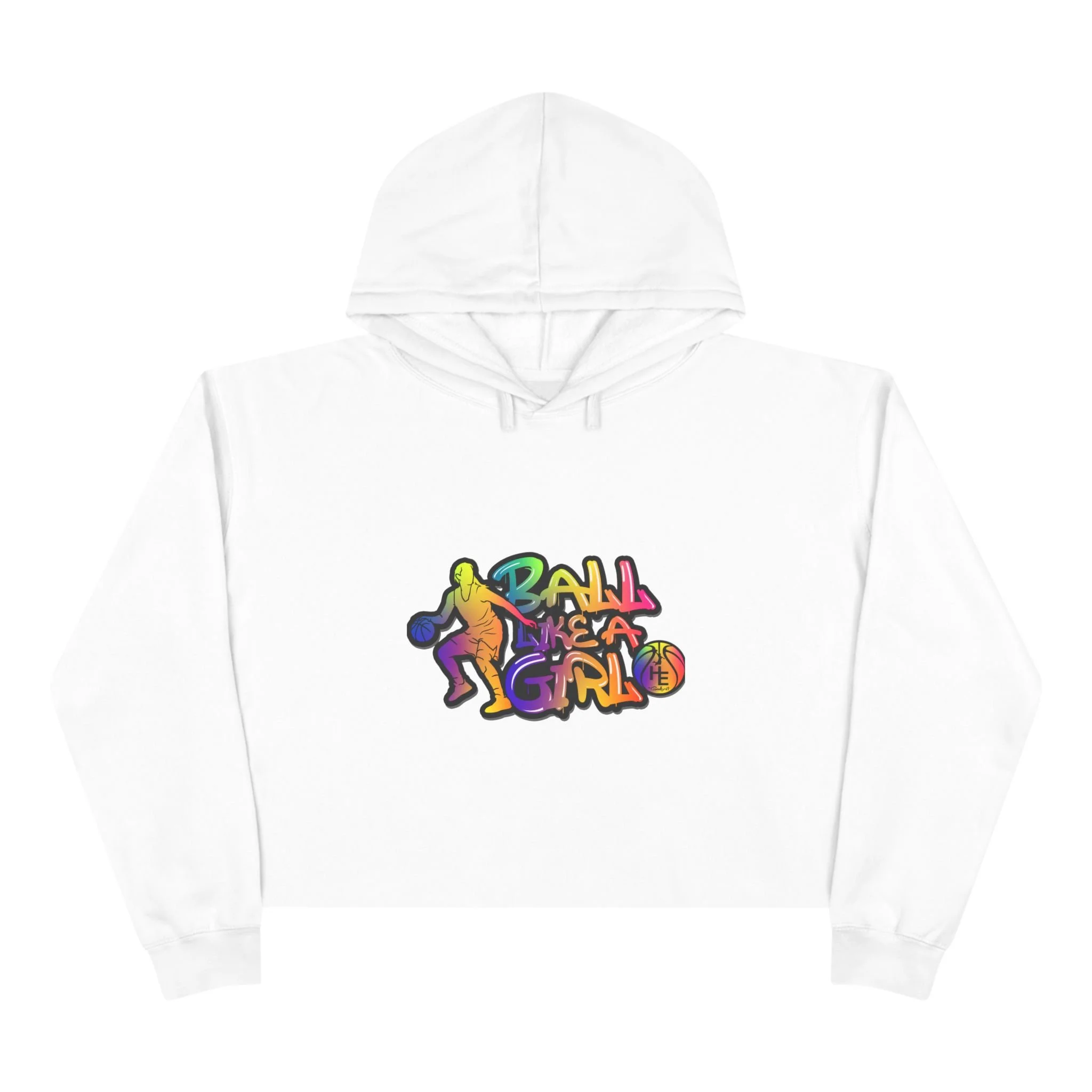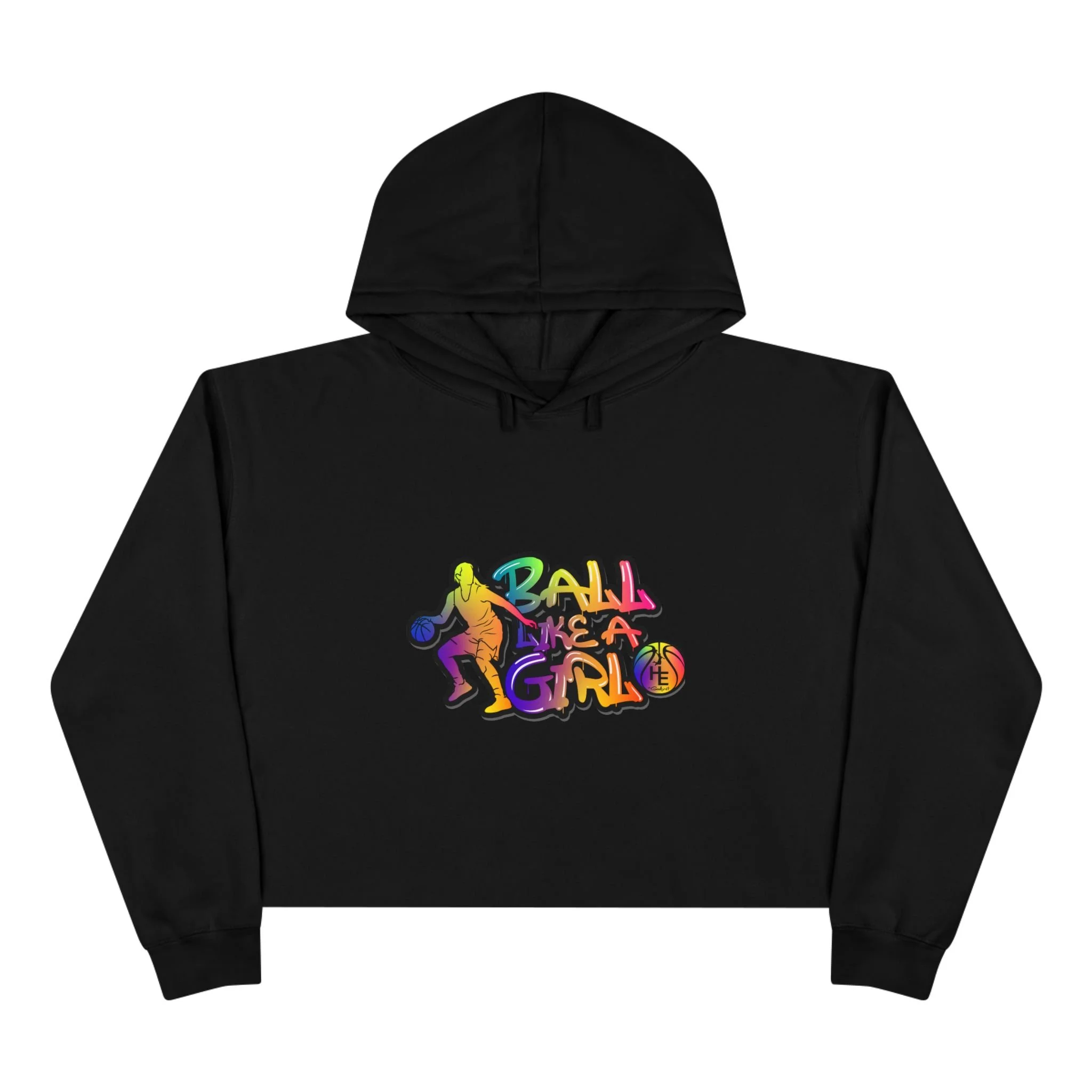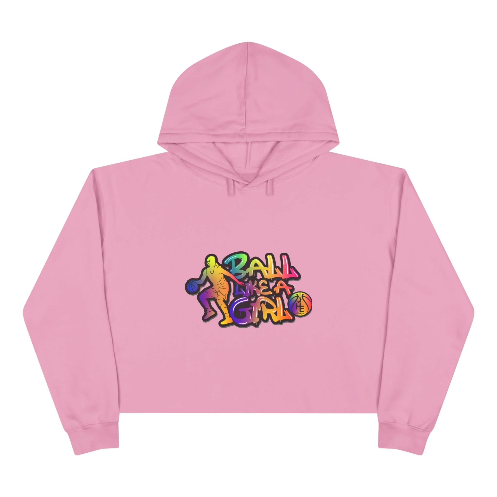 Basketball Girl Cropped Hoodie – Colorful Retro Graphic Crop Sweatshirt