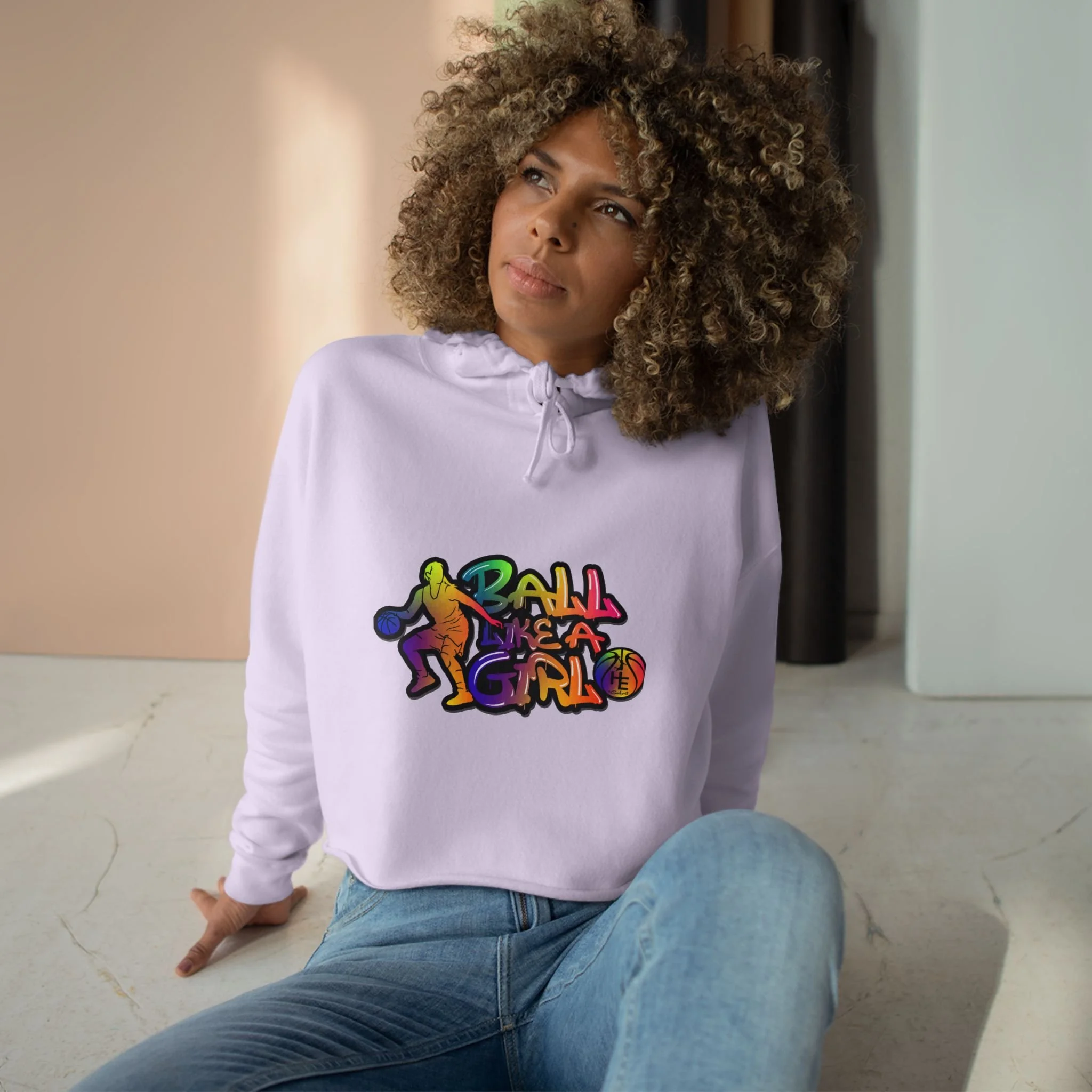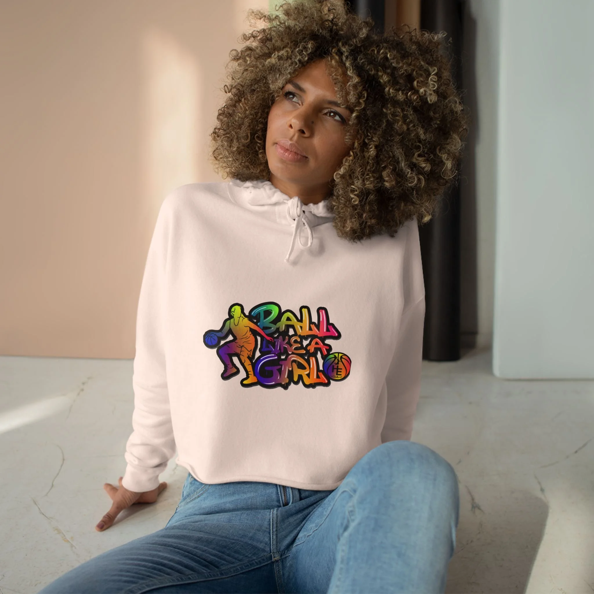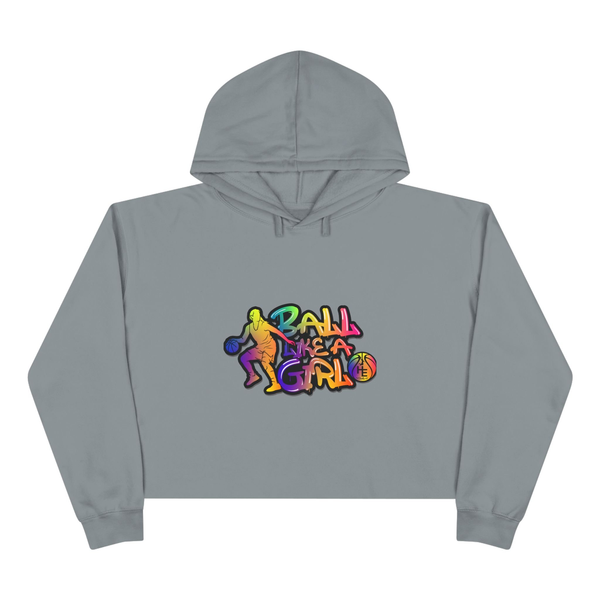 Basketball Girl Cropped Hoodie – Colorful Retro Graphic Crop Sweatshirt